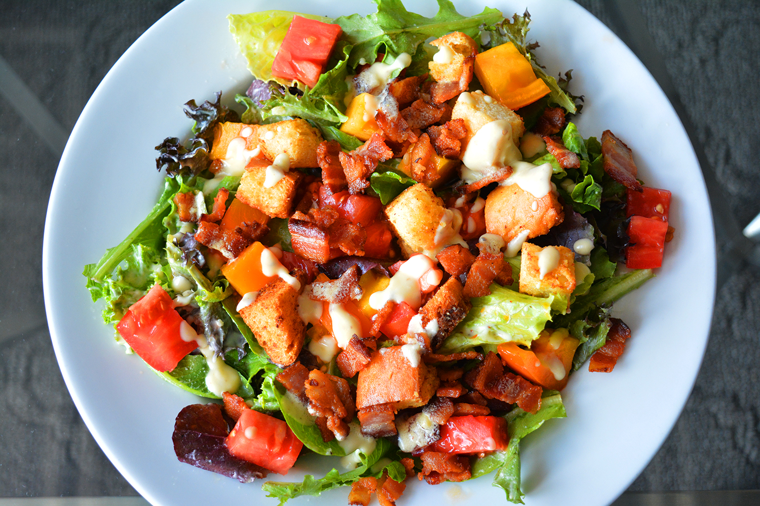 Every plate is flavor forward, our cuisine is rustic, plentiful and not spicy unless you ask for it to be. Everything is made from scratch, to order. Our hams are cured and smoked in house as is our bacon, sausages, smoked turkey...everything. French bread is baked every morning, sauces, dressings, all housemade. Everything.